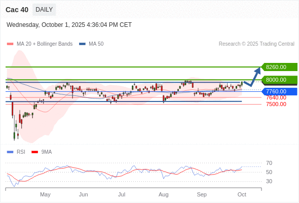 Cac 40 短线: 期待8000.00。
