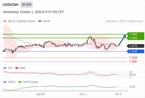 美元/人民币 当日内 : 有上涨的可能,目标价位定在 7.1401 。