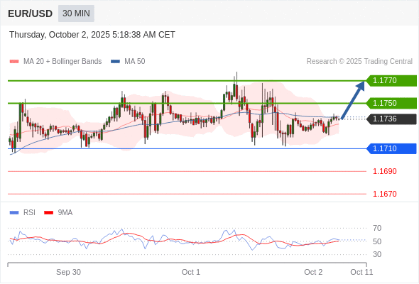 在 1.1710 之上,看涨,目标价位为 1.1750 ,然后为 1.1770 。