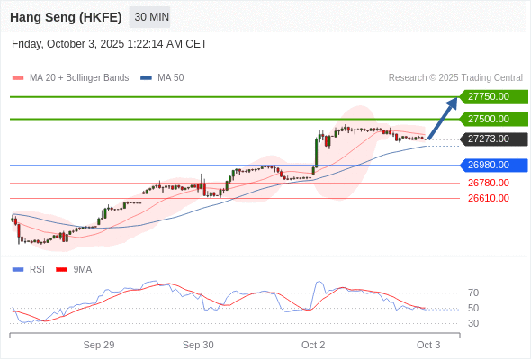 香港恒生指数期货 当日内: 超短线(当日内)支撑位在26980.00附近。