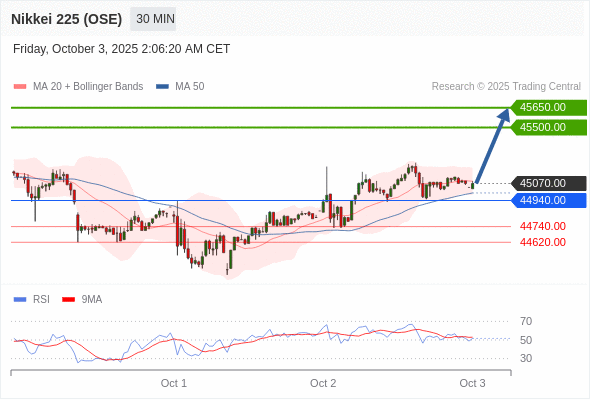 日经225股指期货 (OSE) 当日内: 目标位为45500.00。