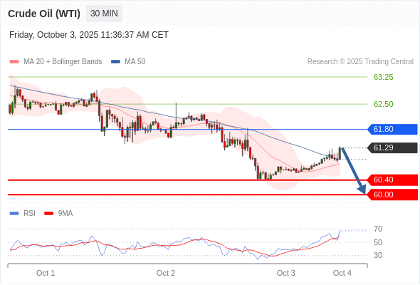 交易策略: 在 61.80 之下,看跌,目标价位为 60.40 ,然后为 60.00 。