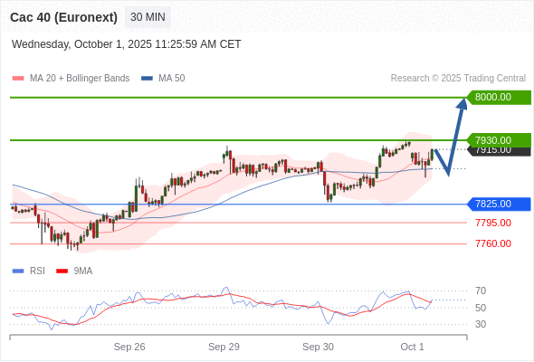 在 7825.00 之上,看涨,目标价位为 7930.00 ,然后为 8000.00 。
