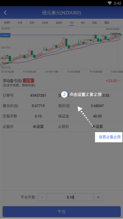 1.进入市价交易界面,输入或选择交易手数(最小可开仓0.01手,最大可开仓10手)